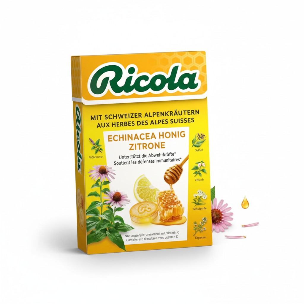 Les bonbons Ricola Échinacée Miel Citron, une délicieuse fusion de saveurs naturelles conçue pour renforcer votre bien-être.
