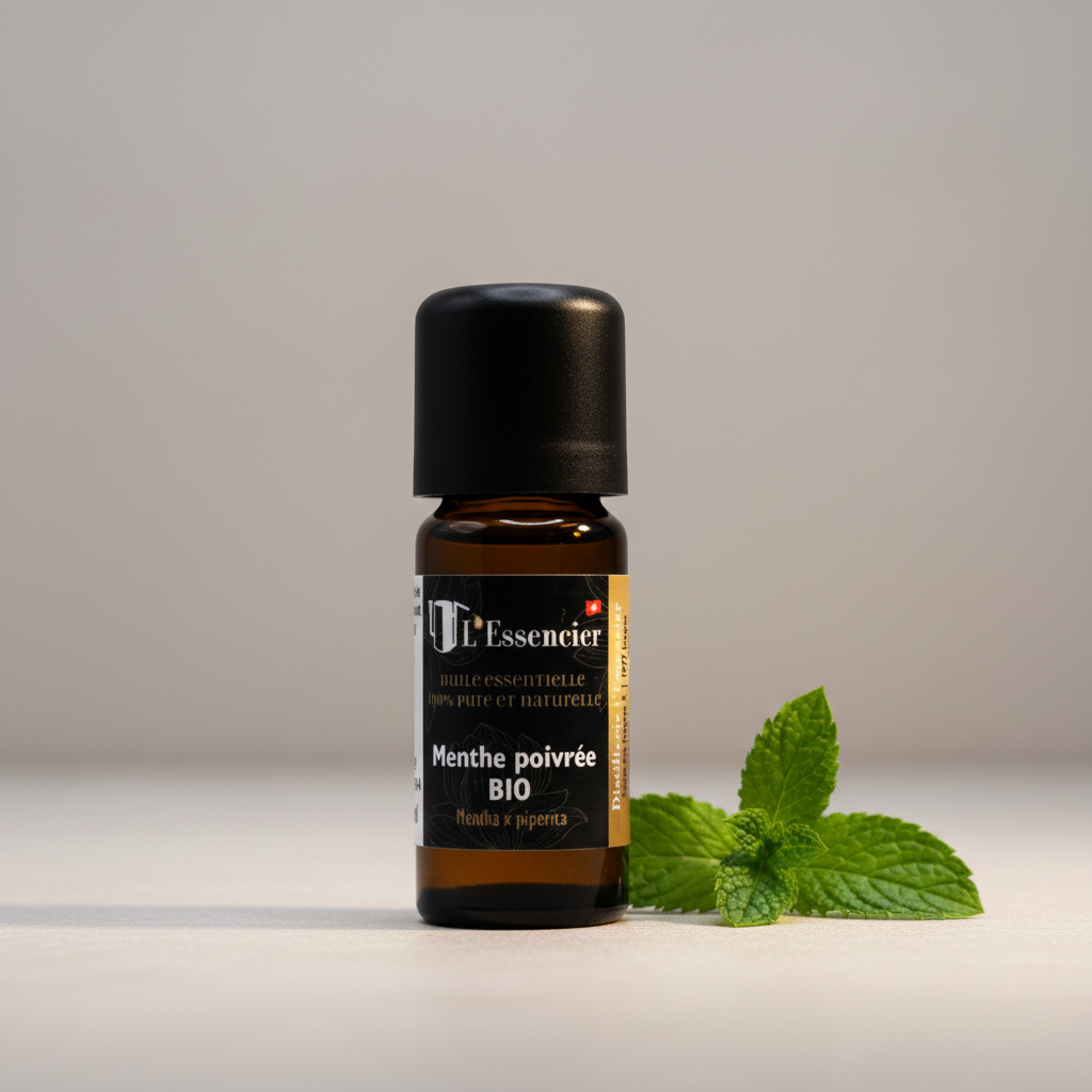Remarque : L'huile essentielle de Menthe Poivrée est particulièrement appréciée pour ses propriétés stimulantes, rafraîchissantes et analgésiques. Elle est idéale pour revitaliser le corps et l'esprit, soulager les maux de tête, et faciliter la digestion. C’est une huile essentielle très courante qui doit être utilisée avec précaution et parcimonie.
