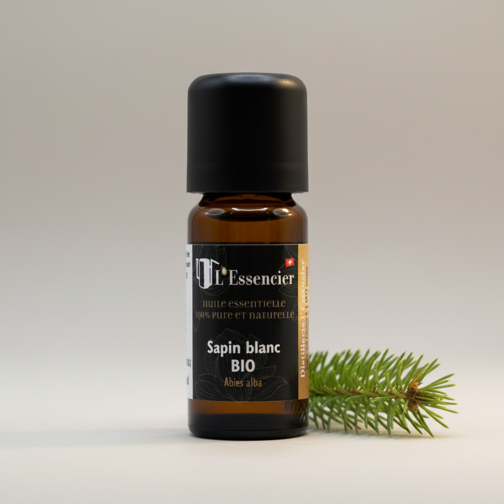 Particularité de la plante : Le Sapin Blanc (Abies alba), également appelé Sapin Pectiné, est un conifère majestueux qui pousse dans les régions montagneuses d'Europe, notamment dans les Alpes. L'huile essentielle est obtenue par distillation des aiguilles.