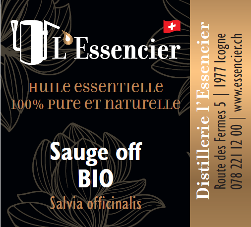 Particularité de la plante : La Sauge Officinale (Salvia officinalis) est une plante aromatique originaire de la région méditerranéenne. Connue pour ses propriétés médicinales depuis l'Antiquité, l'huile essentielle est extraite par distillation des feuilles. La distillation se fait directement dans notre distillerie à Icogne. Cette huile est particulièrement puissante et doit être utilisée avec précaution en raison de sa teneur élevée en thuyone, un composé potentiellement neurotoxique à forte dose.