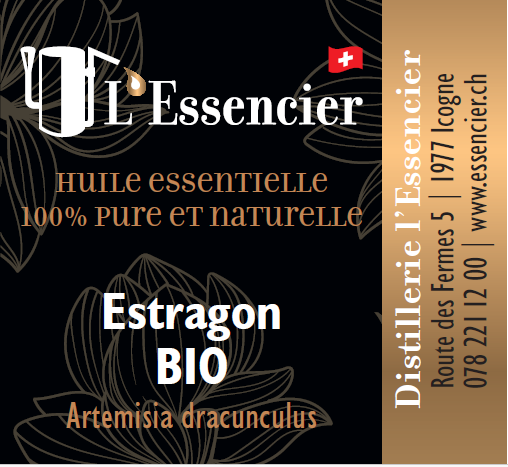 Description : Particularité de la plante : L'Estragon (Artemisia dracunculus) est une plante herbacée vivace originaire d'Asie centrale. L'huile essentielle est extraite par distillation des feuilles et des sommités fleuries. Elle est couramment utilisée en aromathérapie pour ses propriétés antispasmodiques et digestives.