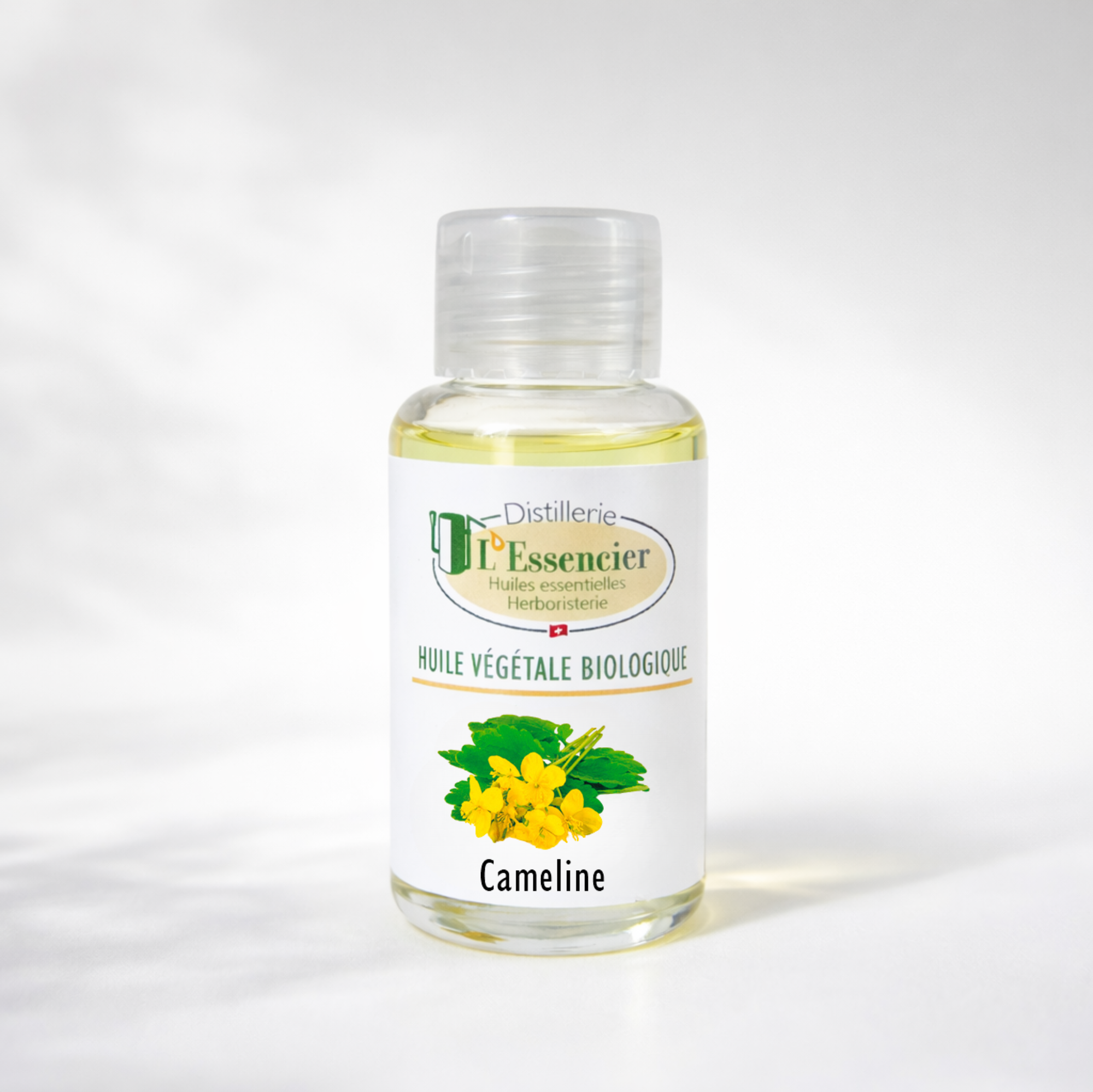 L'huile végétale de cameline, souvent appelée "or des champs", est un véritable atout pour la peau et les cheveux. Sa richesse en acides gras oméga-3 et oméga-6 en fait une huile précieuse pour le soin quotidien.