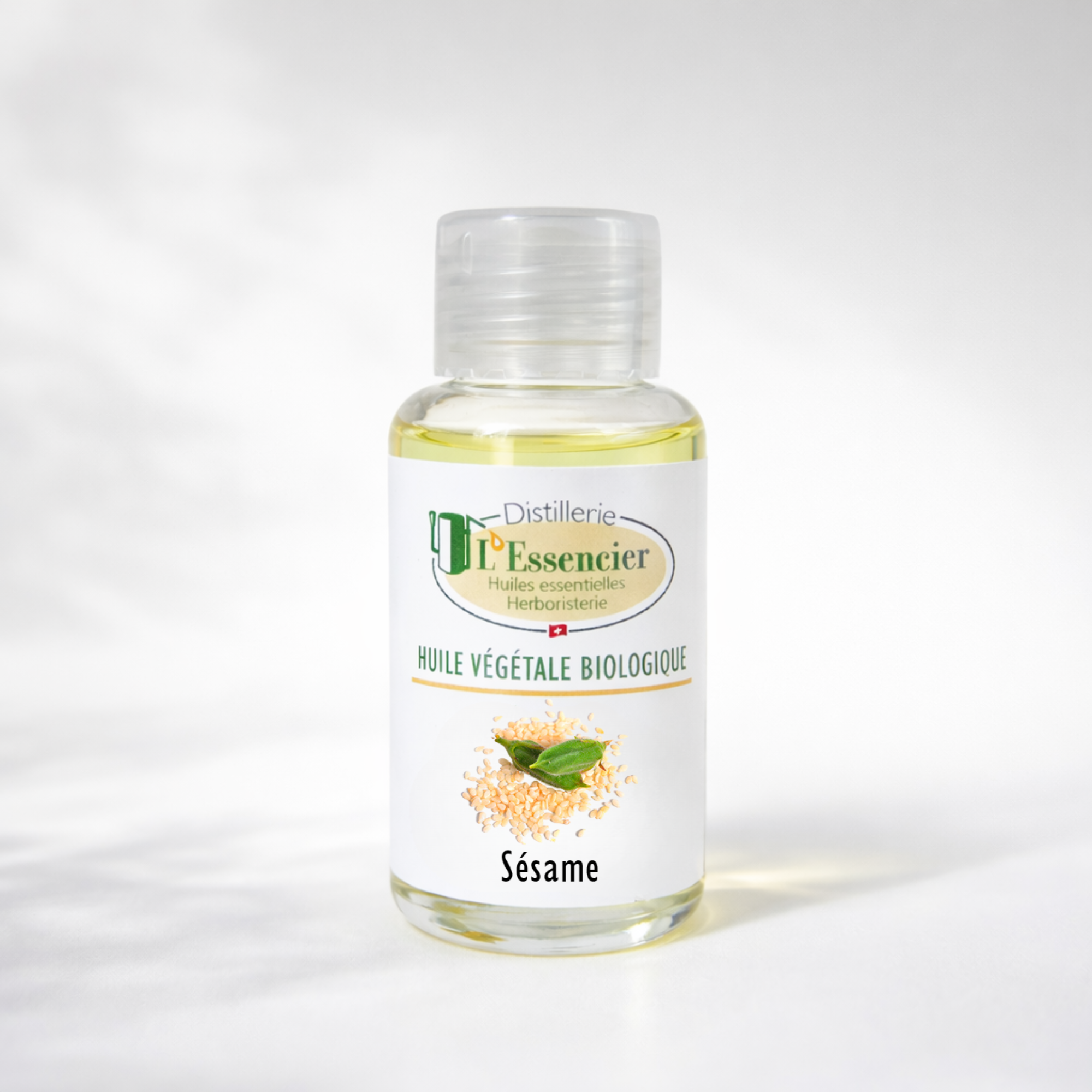 L'huile végétale de sésame, extraite des graines de sésame (Sesamum indicum), est prisée pour ses bienfaits nutritifs et ses propriétés protectrices. Utilisée depuis des siècles, elle est un véritable allié pour la peau et les cheveux.