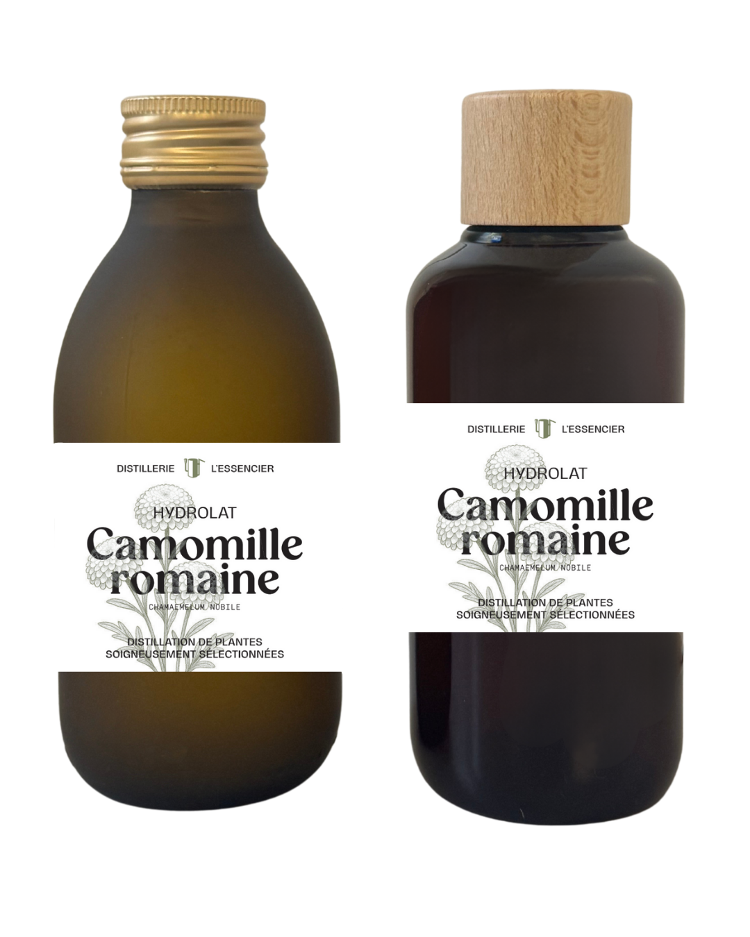 Particularité de la plante : La Camomille Romaine, issue de notre propre production, est réputée pour ses propriétés apaisantes, tant pour la peau que pour le mental. Son efficacité est particulièrement reconnue pour calmer les peaux sensibles ou irritées. Elle est également utilisée pour ses vertus relaxantes sur le système nerveux, favorisant ainsi un état de bien-être général. L'hydrolat de Camomille Romaine est idéal pour les soins des bébés et des jeunes enfants grâce à sa grande douceur.