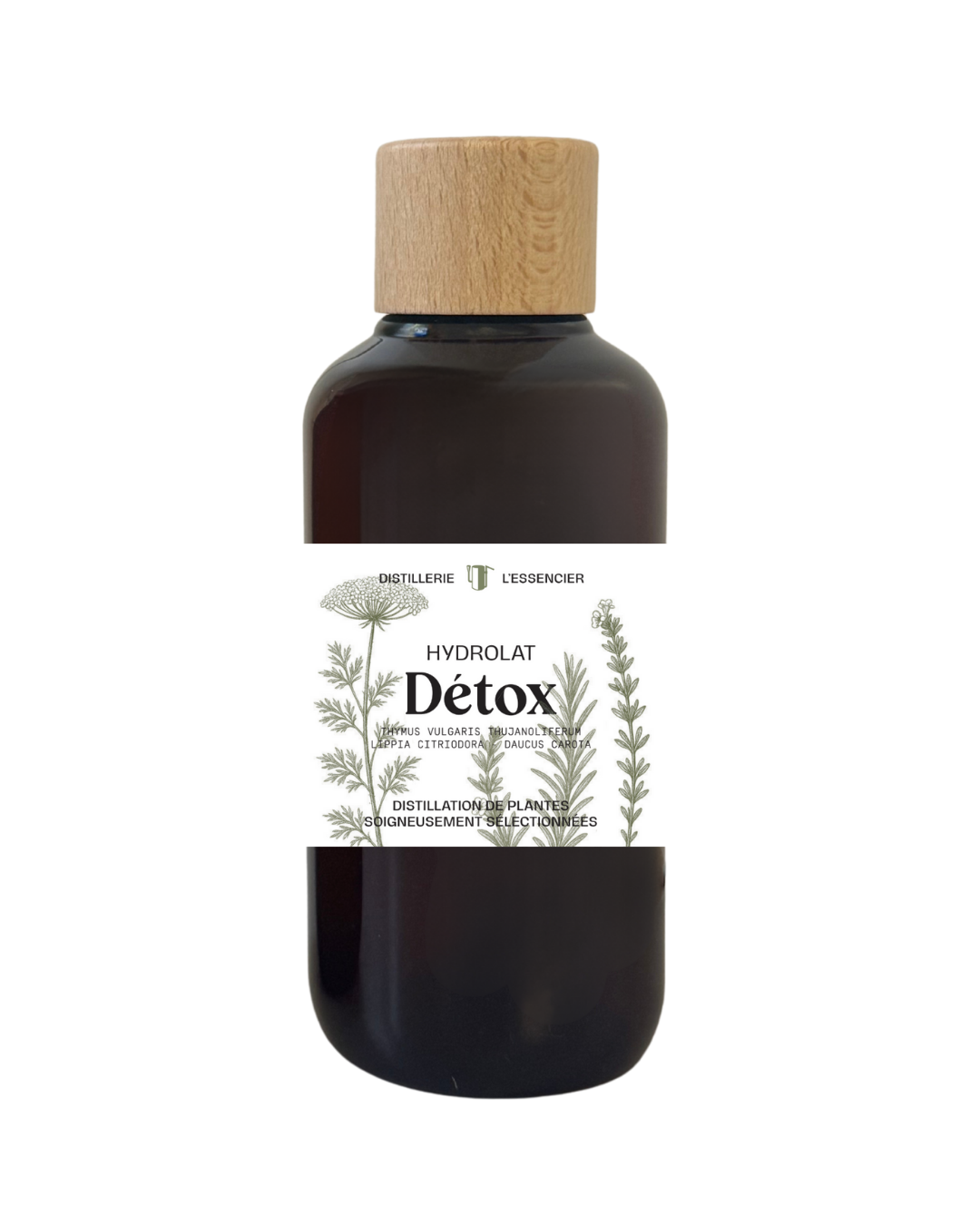 Particularité des plantes : Ce mélange d’hydrolats associe les bienfaits du Thym thujanol, de la Carotte sauvage et du Romarin verbénone. Ces trois plantes forment une synergie idéale pour soutenir la détoxification du corps au début du printemps. Le Thym thujanol est un puissant tonique immunitaire, la Carotte sauvage favorise la régénération cellulaire, tandis que le Romarin verbénone est réputé pour ses vertus drainantes et détoxifiantes, notamment pour le foie.