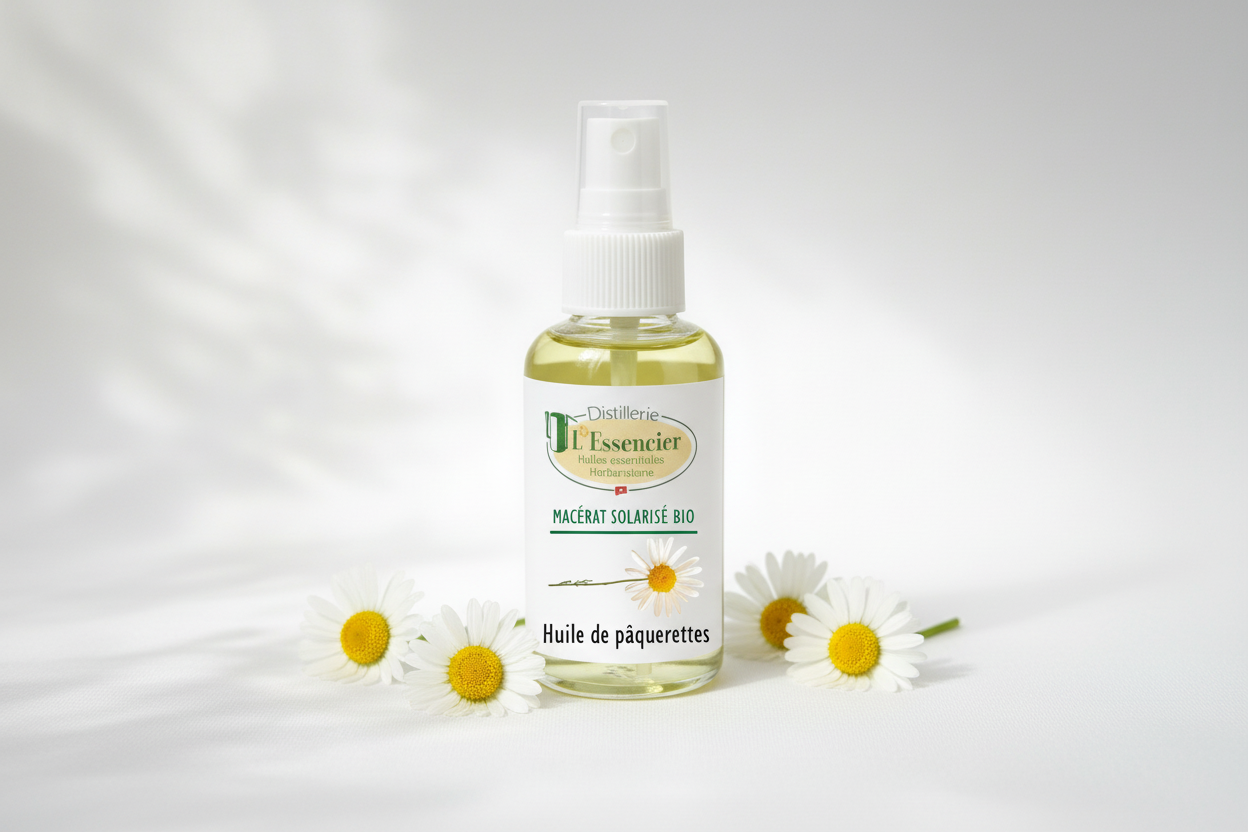 Obtenu par macération des fleurs de pâquerettes dans une huile végétale de qualité, ce macérat est traditionnellement utilisé pour ses propriétés raffermissantes et tonifiantes. Il est particulièrement apprécié pour soutenir la fermeté et l’élasticité de la peau, ainsi que pour favoriser la microcirculation.
