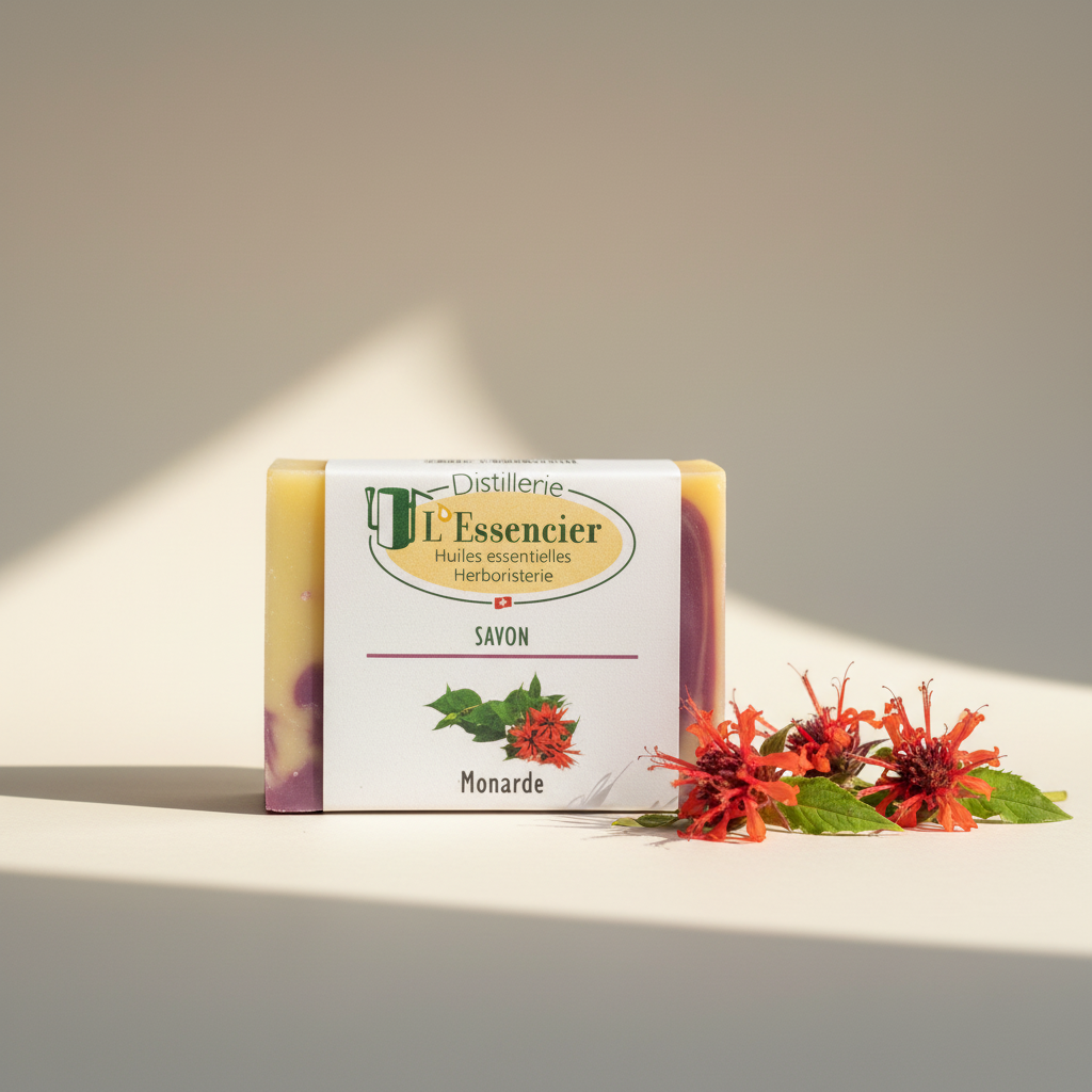 Découvrez notre savon solide à la Monarde du Valais, élaboré avec des huiles biologiques de qualité supérieure.