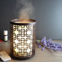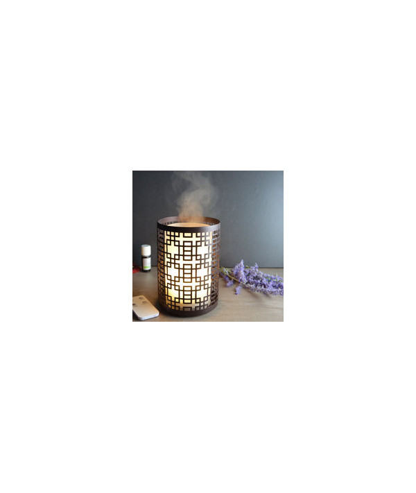 Tout est fait pour donner l’illusion d’une bougie placée dans un photophore ajouré mais lorsque l’on voit cette brume s’échapper, on comprend rapidement qu’il cache quelque chose. Un astucieux système aimanté permet de maintenir le diffuseur au centre du photophore métallique tout en assurant l’alimentation électrique. Diffusion comme éclairage (fixe, scintillant, intensité…) se pilote à partir de la télécommande.